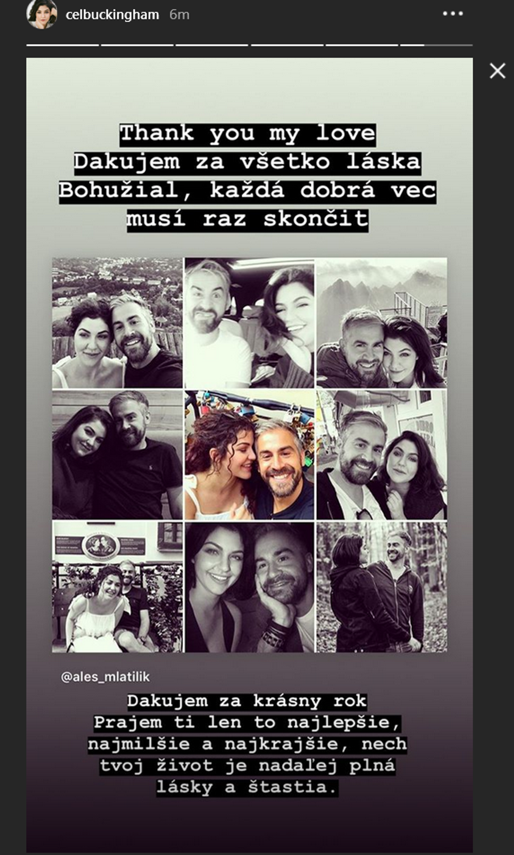 Celeste Buckingham a Aleš Mlátilík viac netvoria pár. Dvojica spolu randila približne rok a za ten čas si boli veľmi blízki. Dôkazom je aj koláž fotiek, ktorú obaja zverejnili na rozlúčku na Instagrame.