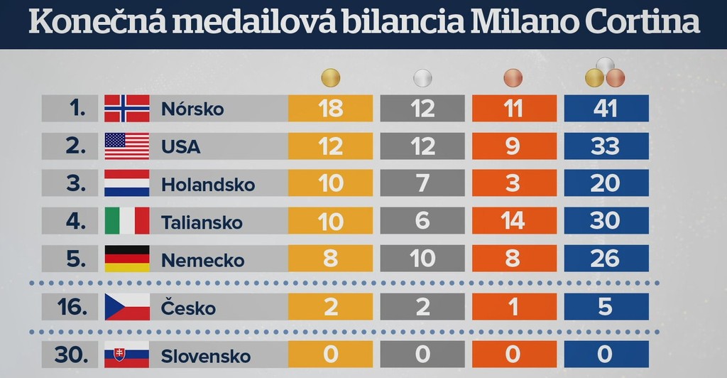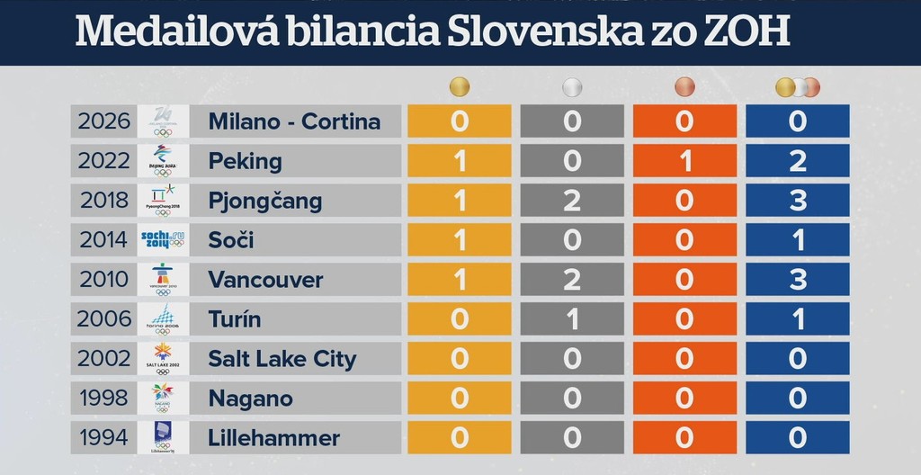 Celkovo 354 medailí rozdali organizátori na hrách v talianskych mestách Miláno a Cortina d'Ampezzo. Ani jedna však neskončila na slovenskom krku. Pre fanúšikov sklamanie, podľa odborníkov tvrdá realita slovenského športu.