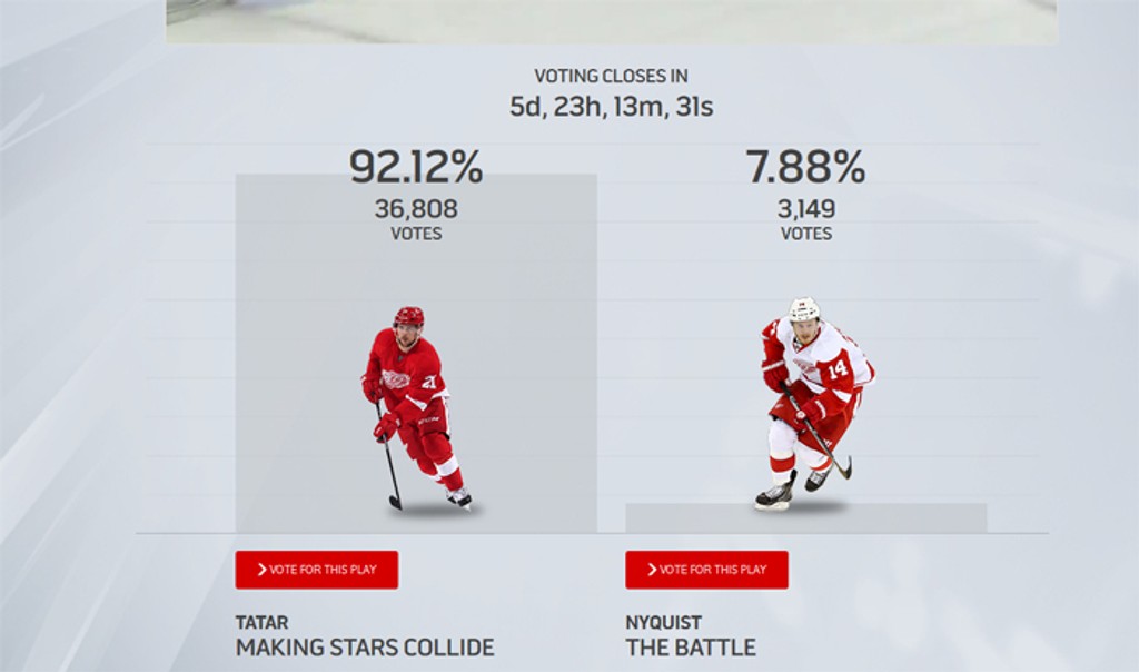 Dnes sa začalo finále o najkrajší gól sezóny. Stretnem sa v ňom proti spoluhráčovi z klub Detroid Red Wings - Gustavovi Nyquistovi. Ďakuje fanúšikom za hlasy a za vašu podporu. „Keď sme už tak ďaleko, hádam to nepustíme Švédom," napísal Tomáš na svojom profile na Facebooku.