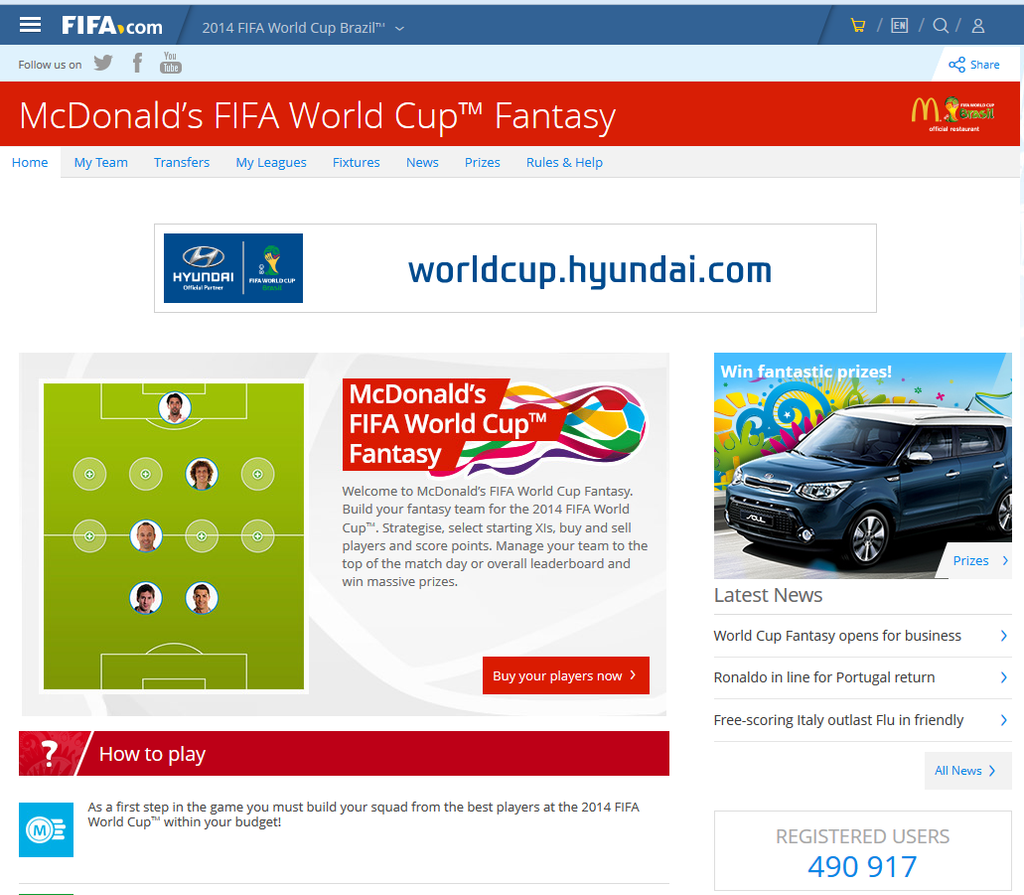 Aký tím by ste postavili, kebyže máte k dispozícii všetkých hráčov, ktorí sa predstavia na futbalových Majstrovstvách sveta 2014 v Brazílii? Vyskúšajte si úlohu manažéra „ideálnej" reprezentácie a zahrajte si oficiálnu Fantasy hru Medzinárodnej futbalovej federácie (FIFA).