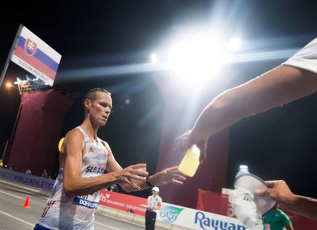 V extrémnych podmienkach, ktoré v katarskej Dauhe panovali v noci zo soboty na nedeľu, odstúpil po 28 kilometroch a nerozšíril zbierku úspechov s triumfami na MS 2015, OH 2016 či dvoma striebornými medailami z ME. Medzi ženami nedokončila ani slovenská reprezentantka Mária Katerinka Czaková, ktorá vzdala po 31 kilometroch.