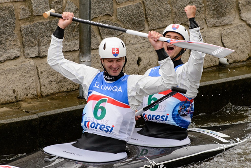 Čerství majstri Európy z nedávneho šampionátu vo Viedni bratranci Ladislav a Peter Škantárovci sa stali víťazmi nedeľňajšieho finále C2 na tretích pretekoch Svetového pohára vo vodnom slalome v pražskej Troji.