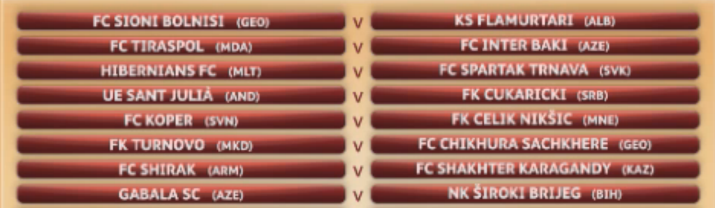 1. predkolo (prvé zápasy: 3. júla, odvety: 10. júla)
