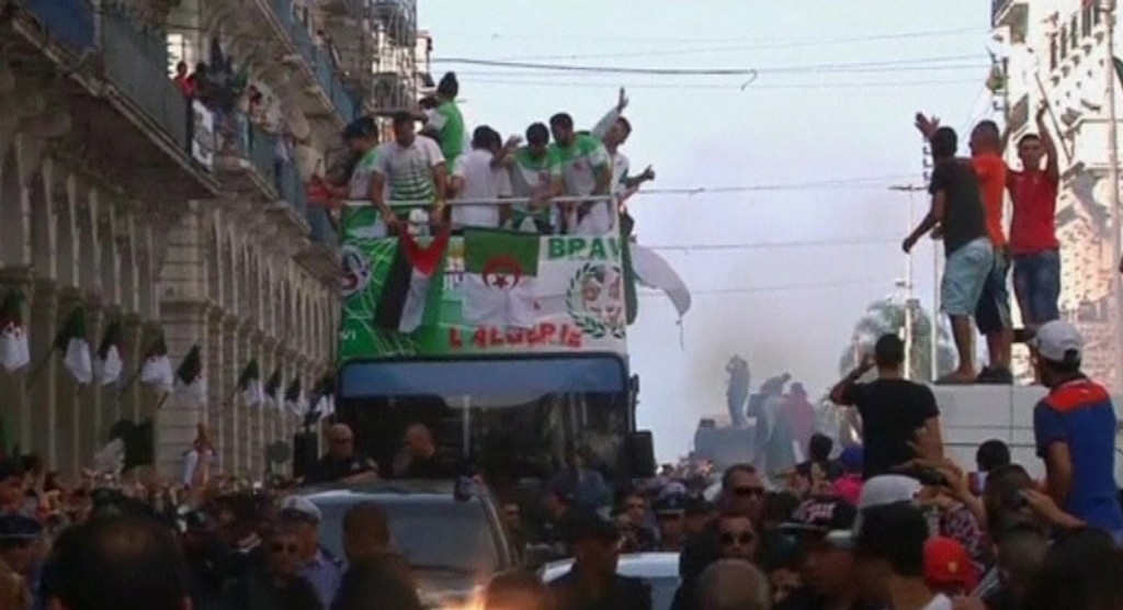 Tisícky nadšených priaznivcov vyšli v noci po zápase do ulíc hlavného mesta Alžír, kde spievali národné piesne. V dave viali vlajky a všetci oslavovali napriek prehre historický postup mužstva do osemfinálovej fázy turnaja. Domáce médiá ocenili výkon v zápase proti Nemecku (1:2 pp). "Zelení odchádzajú so vztýčenými hlavami. Hráte ako muži a prehrávate ako hrdinovia," píše sa na titulnej strane novín Echorouk.