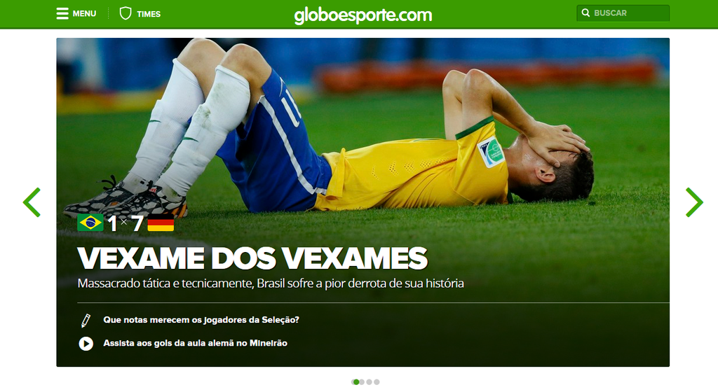 Portál novín Folha de Sao Paulo mal na internetovej stránke titulok: „Historická hanba". V článku napísali: „Brazíliu na ceste za titulom na domácej pôde opäť ponížili."
