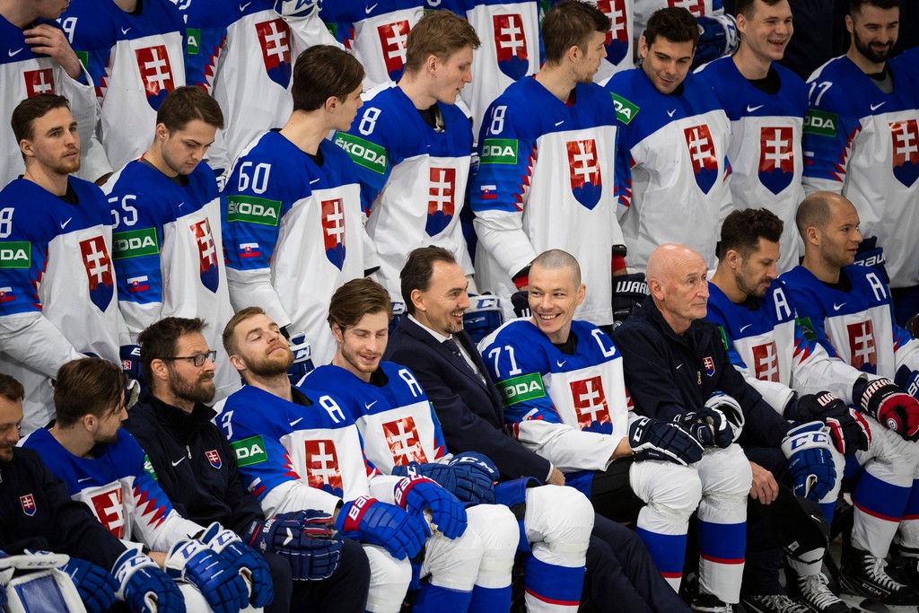 Slovenská hokejová reprezentácia absolvovala pred piatkovým tréningom tímové fotenie. Bolo vidieť, že všetci už vysokú prehru so Švajčiarmi hodili za hlavu a v tíme panuje dobrá nálada.