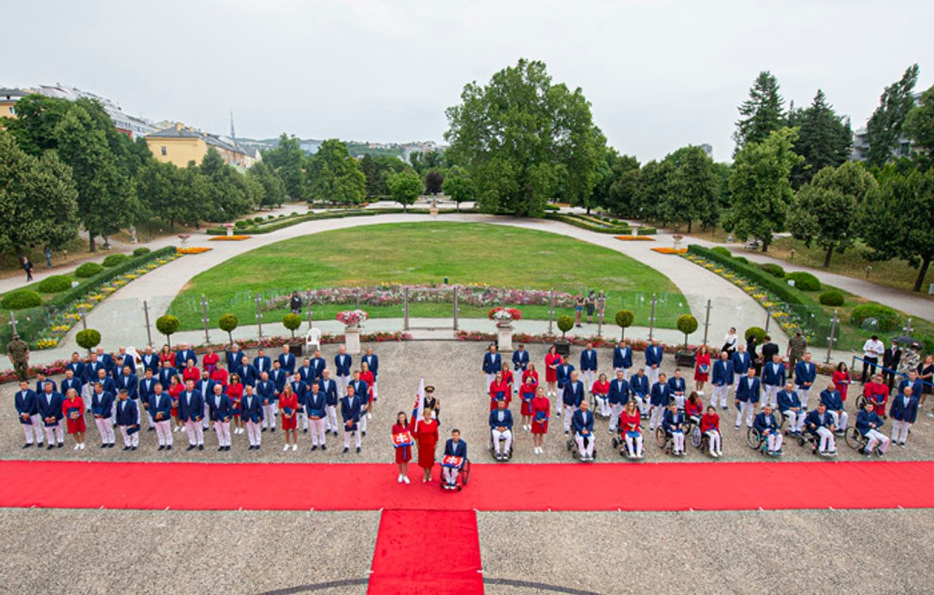 Športová gymnastika Barbora Mokošová a parastrelec Radoslav Malenovský v stredu na nádvorí Prezidentského paláca v Bratislave zložili v mene celej olympijskej a paralympijskej výpravy slávnostný sľub do rúk prezidentky Slovenskej republiky Zuzany Čaputovej.