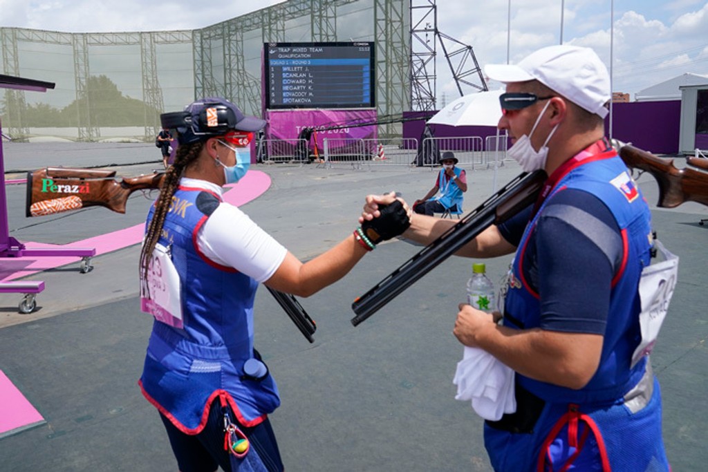 Dvojici Kovačócy - Špotáková ušlo lepšie miesto v poslednej položke, slovenské duo obsadilo v kvalifikácii 8. miesto výkonom 144. Do rozstrelu súboja o bronz im chýbali dva terče. Špotáková netrafila v prvej položke dva holuby, v tretej ďalšie tri. Kovačócy minul dokopy iba raz.