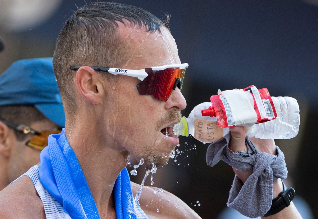 Tridsaťosemročný pretekár sa v prvej polovici piatkových pretekov držal na čele, potom stále vo vedúcej skupine, no od 30. kilometra mu začala unikať. Manko narastalo a keď už bolo zrejmé, že sa do početnej skupiny nevráti, vedel, že o medailu už nezabojuje. Vzdať svoju záverečnú súťaž však za žiadnych okolností nechcel a až do konca bojoval, aby ešte poslednýkrát preťal cieľ.