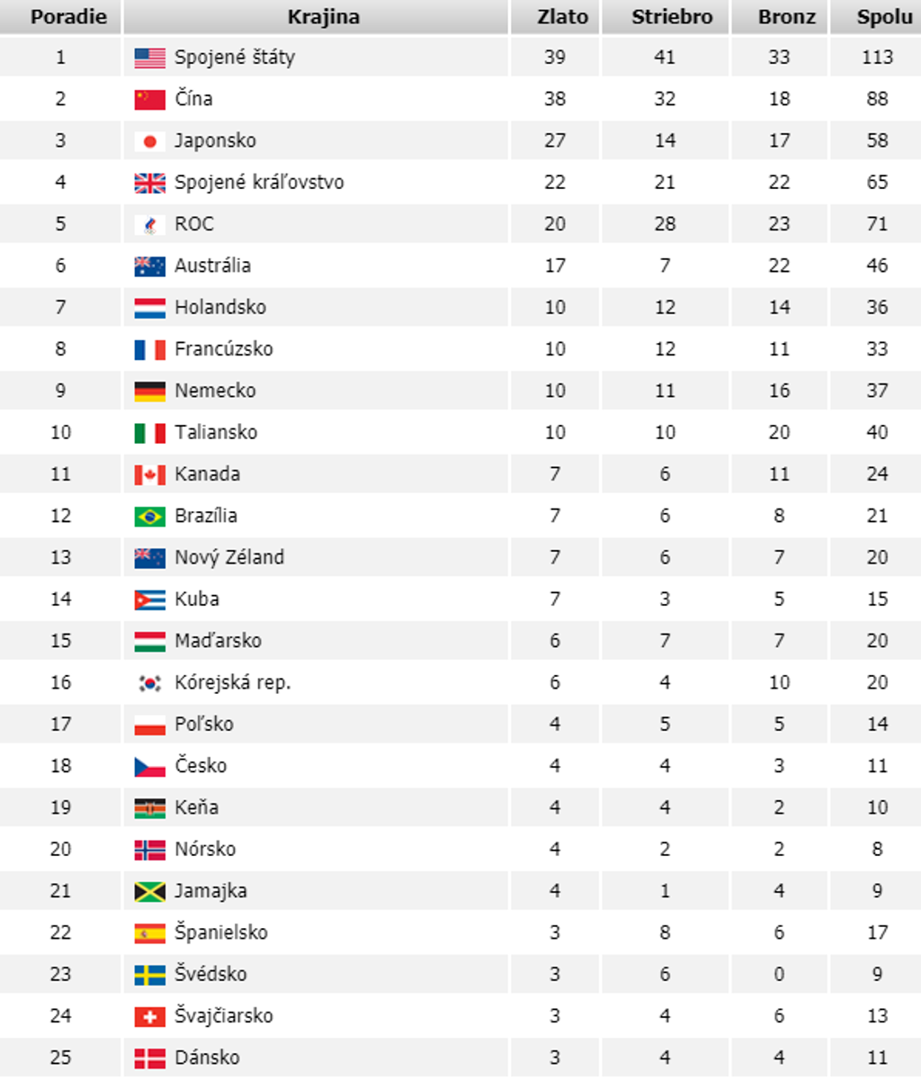Celkové poradie štátov na olympiáde nájdete v našej tabuľke TU.
