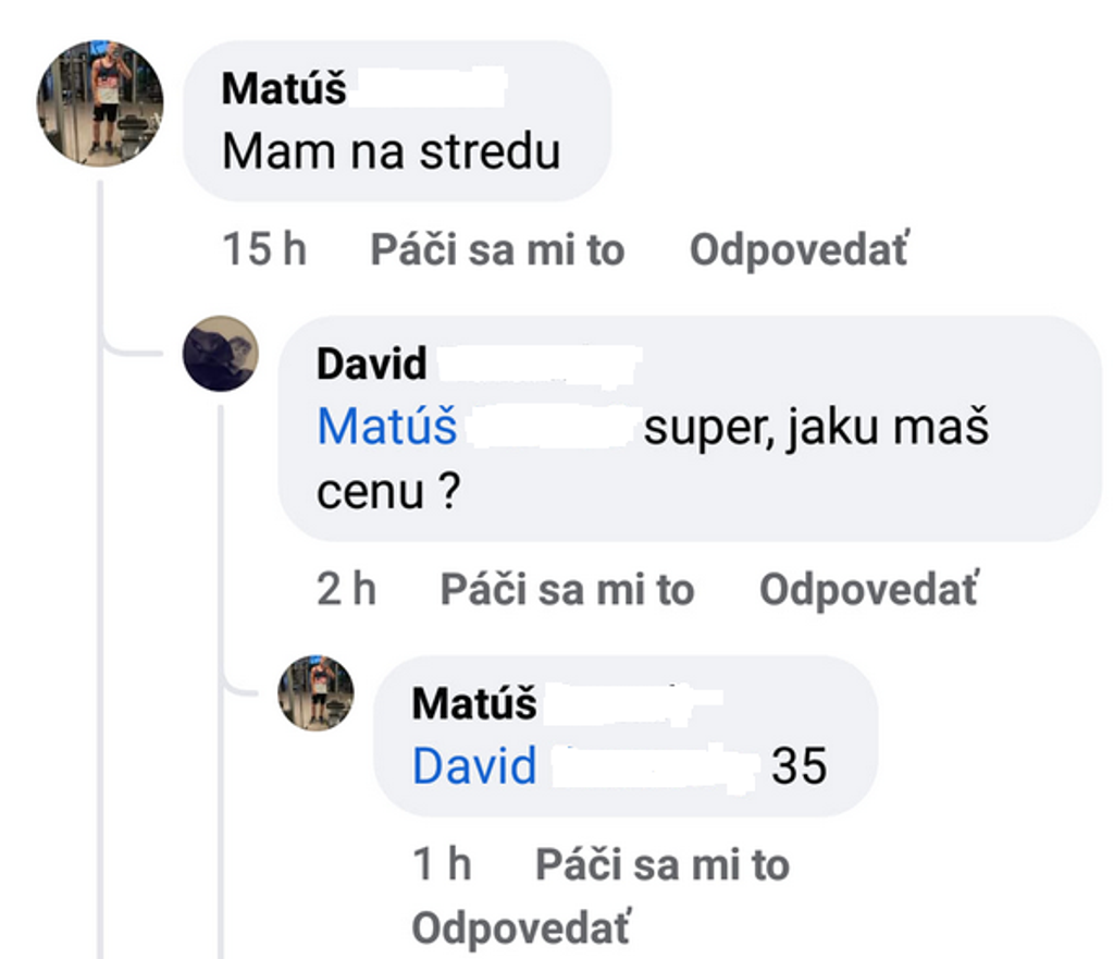 Osobitným príkladom je Matúš z Facebooku. Ten najskôr ponúkal lístky na stredu na státie za 40 za kus, následne inému záujemcovi uviedol sumu 35 eur.