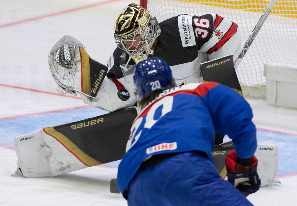 Minútu pred koncom prvej časti sa snažil puk dostať do kanadskej bránky debutant na seniorských MS Sýkora, druhý gól svojho tímu však nedal.