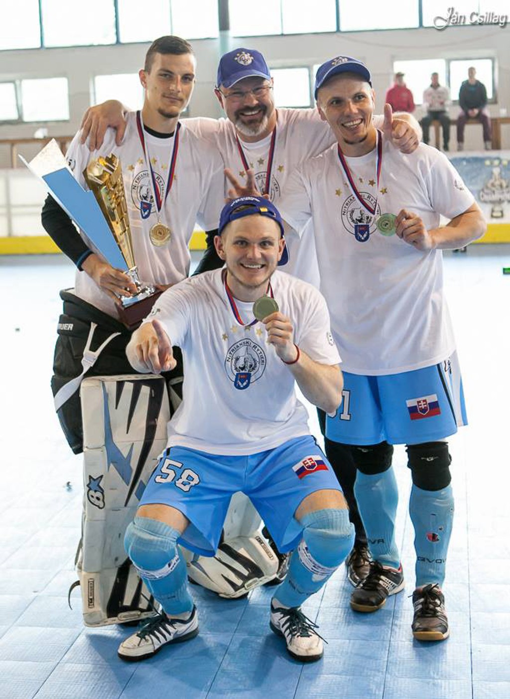 Trofej staronovým majstrom odovzdal prezident slovenskej hokejbalovej únie Jozef Stümpel.
