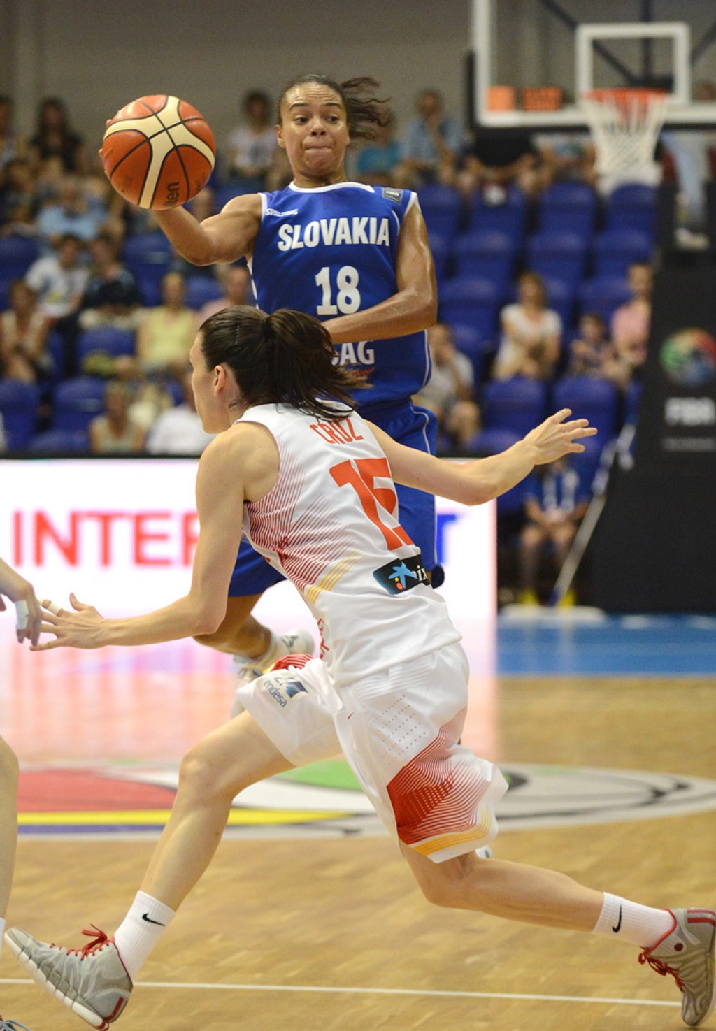 Zostavy a body: Torrensová 20, Xargayová a Ndourová po 11, Palauová 7, Nichollsová 2 (Cruzová 14, Dominguezová 7, Gilová 6, Herrerová 4, Pascuaová 0, Martinezová 0, Romerová 0) - Toliverová 22 /3 trojky/, Bálintová 16, Jurčenková 10, Hruščáková 7, Kiššová 4 (Krč-Turbová 8, Žirková a Páleniková po 5, Vyňuchalová 4, M. Tetemondová 0, Janoščíková 0). TH: 31/23-32/25, trojky: 5:6, osobné chyby: 31:30, 5 faulov: Xargayová - Kiššová, Vyňuchalová, Jurčenková, rozhodcovia: J. Bissang (Fr.), A. Šarapa (Biel.), A. Manos (Gré.), 1100 divákov.