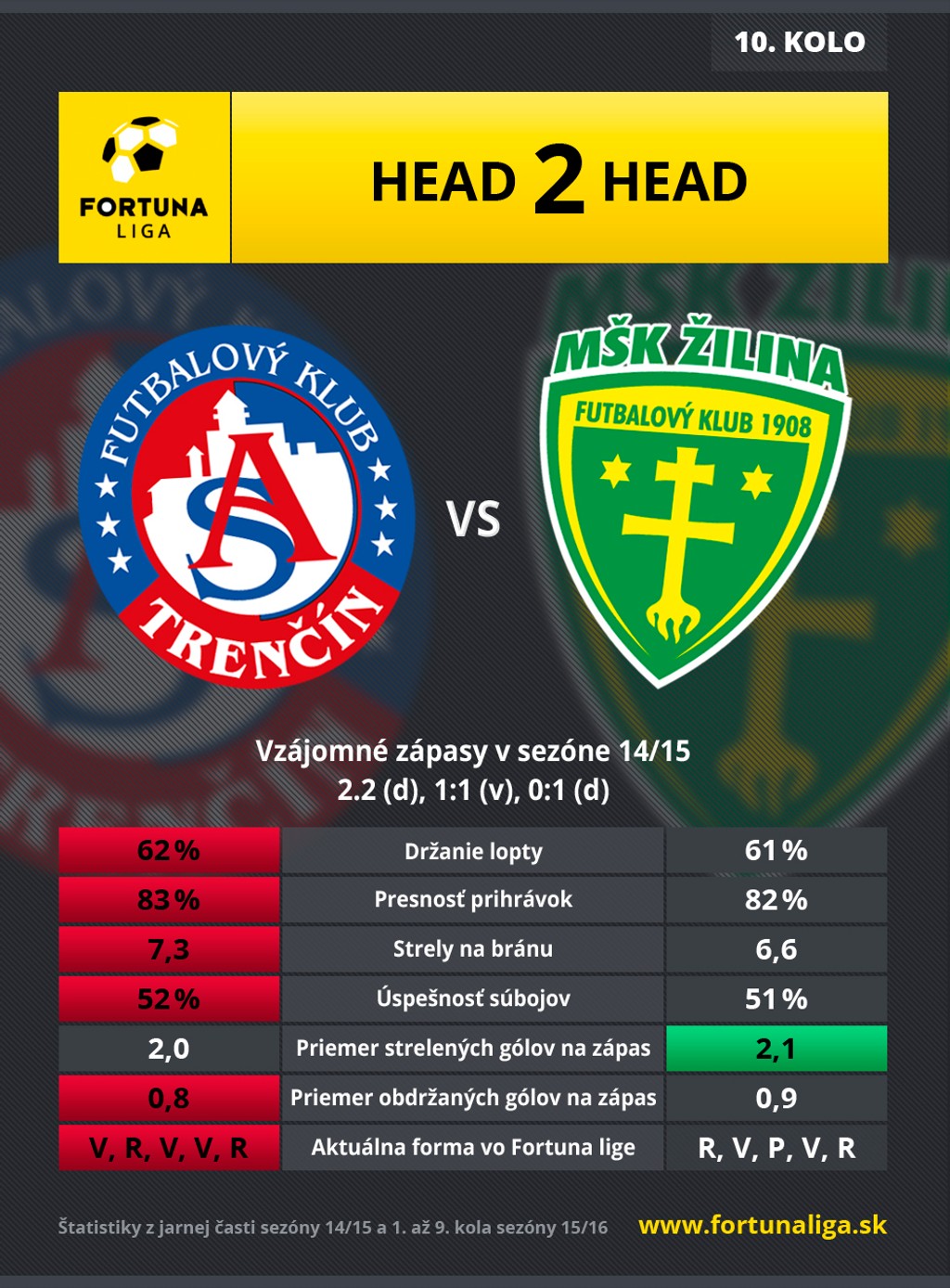 Svoj náskok 5 bodov majú pred druhým MŠK Žilina, ktorý v sobotu doma iba remizoval s nováčikom zo Skalice 2:2. Práve hráči spod Dubňa majú jedinečnú šancu hráčov z Trenčína pripraviť o neporaziteľnosť a priblížiť sa im v tabuľke na dva body.