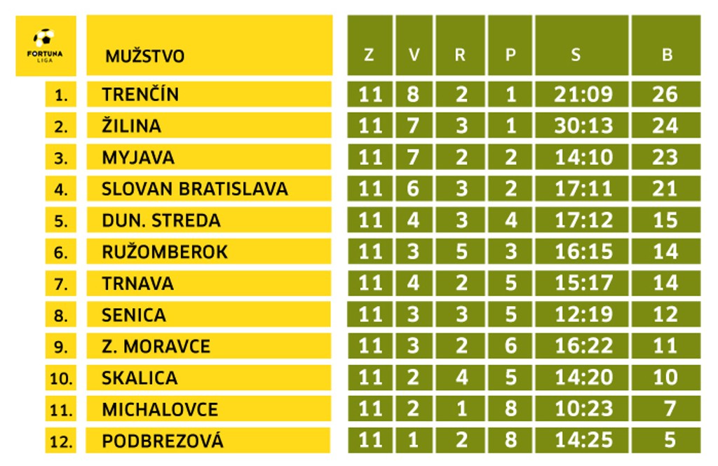 Fortuna liga odohratím 11. kola uzatvorila svoju prvú tretinu. Mužstvá si tak na vlastnej koži skúsili každého jedného súpera. Z tohto dôvodu sa môžeme prvý raz pozrieť na tabuľku a poukázať na formu jednotlivých tímov.