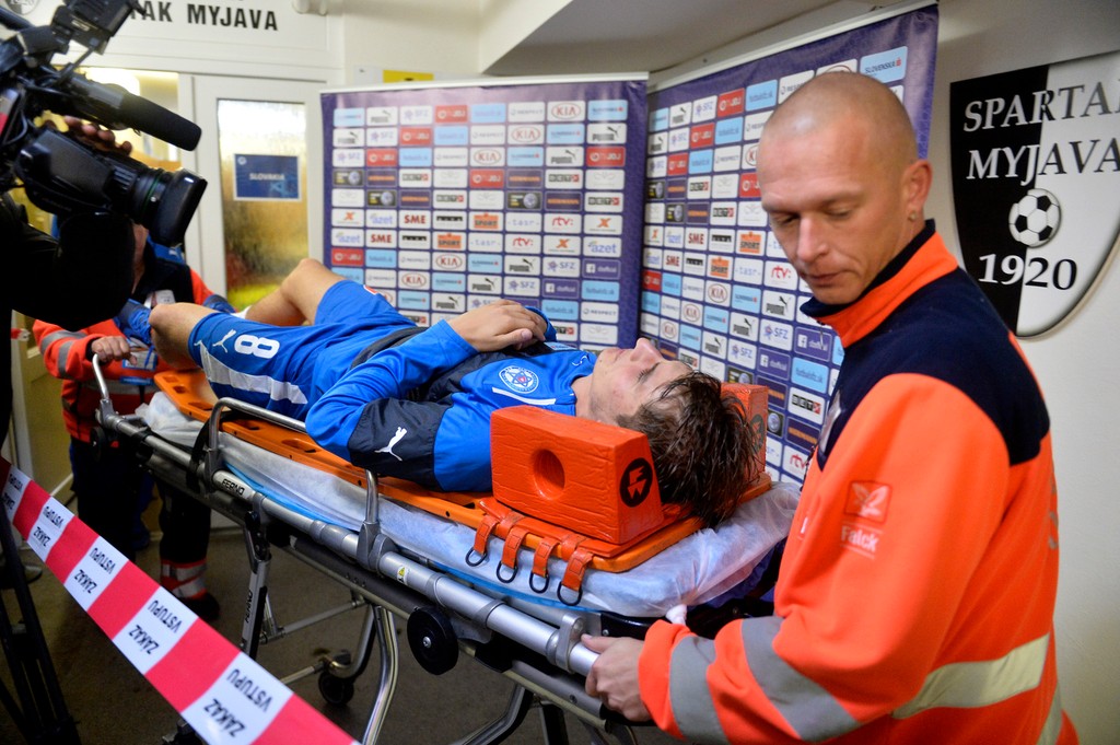 Pri súboji v súperovej šestnástke inkasoval úder do hlavy a musel ho vystriedať Miroslav Káčer.