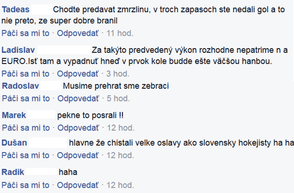 Fanúšikova úspechu sa aj napriek tomu na sociálnych sieťach predviedli. Nezdržali sa sarkastických až vulgárnych komentárov na adresu futbalistov. Vybrali sme pár „najlepších". Veríme, že keď budeme onedlho oslavovať postup, budú stáť oblečení v slovenskom drese so slovenskou hymnou na perách.