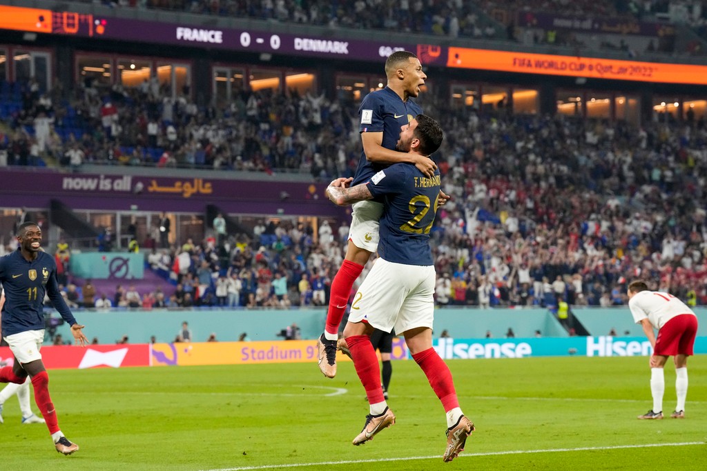 Futbalisti Francúzska zvíťazili v sobotňajšom zápase D-skupiny MS v Katare nad Dánskom 2:1 a ako prvý tím si zaistili postup do osemfinále. O oba ich góly sa postaral Kylian Mbappé, za severanov skóroval Andreas Christensen.