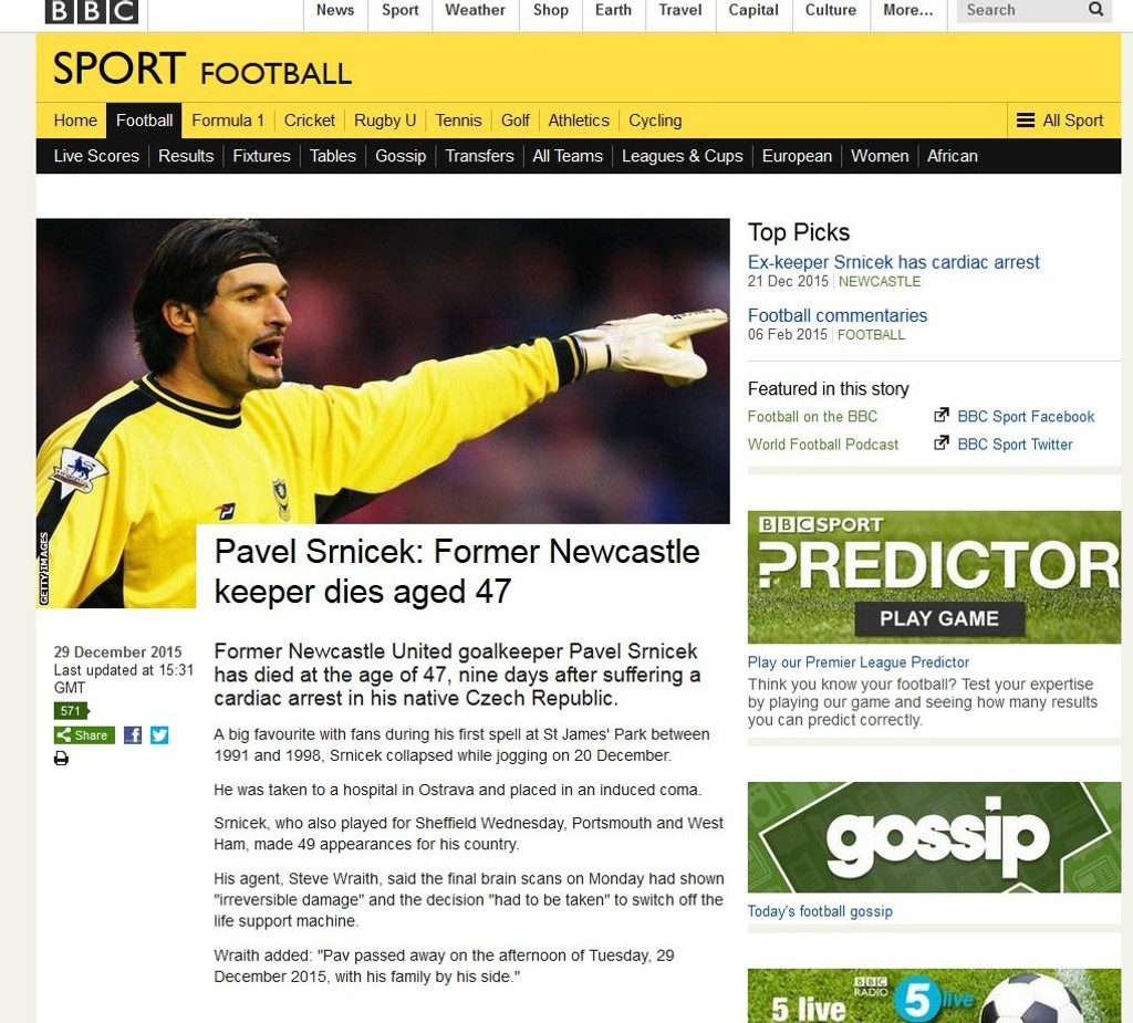 S informáciou o jeho skone prišli britské médiá ako BBC či Daily Mirror. Následne ju potvrdil hovorca ostravskej nemocnice, v ktorej futbalista ležal. Píše TN.cz.