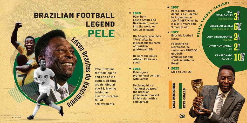 Edson Arantes do Nascimento, celosvetovo známy ako Pelé, sa zaradil medzi najväčšie ikony svetového futbalu. Brazílčana, ktorý ako jediný získal trikrát titul majstra sveta, považujú mnohí za najlepšieho futbalistu histórie. Vo štvrtok zomrel vo veku 82 rokov po dlhom boji s rakovinou.