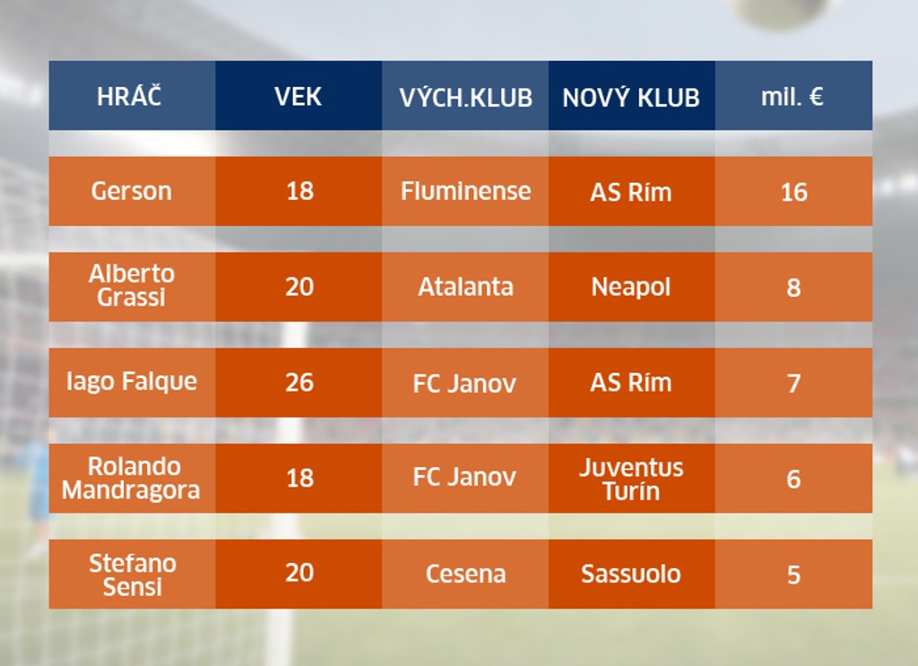 Šestnásť miliónov eur. Presne toľko AS Rím zaplatil za 18-ročný brazílsky zázrak menom Gerson. Ide o najvyššiu sumu v rámci príchodov do Serie A počas tohto prestupového okna. Ofenzívny záložník prichádza z brazílskeho Fluminense, aby zacelil miesto po odchode Gervinha. Ten sa upísal čínskemu tímu Hebei China Fortune, Rimania inkasujú za transfer 18 miliónov €.