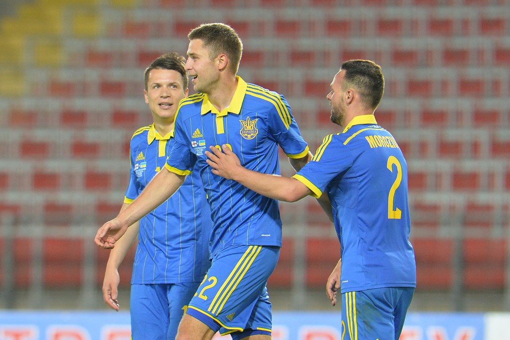 stredopoliari: Viktor Kovalenko, Taras Stepanenko, Maksym Malyšev (všetci Šachtar Doneck), Ivan Petrjak, Oleksandr Karavajev (obaja Zorja Luhansk), Oleg Gusev, Sergij Rybalka, Denys Garmaš, Sergej Sydorčuk, Andrij Jarmolenko (všetci Dynamo Kyjev), Jevhen Šachov, Ruslan Rotaň (obaja Dnipro Dnipropetrovsk), Anatolij Tymoščuk (Kajrat Almaty), Jevhen Konopľanka (FC Sevilla)
