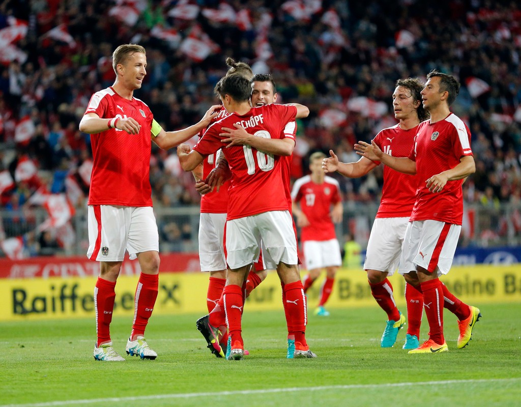 Stredopoliari: David Alaba (Bayern Mníchov), Marko Arnautovič (Stoke City), Julian Baumgartlinger (1. FSV Mainz), Martin Harnik (VfB Stuttgart), Stefan Ilsanker (RB Lipsko), Jakob Jantscher (FC Luzern), Zlatko Junuzovič (Werder Brémy), Marcel Sabitzer (RB Lipsko), Alessandro Schöpf (Schalke 04)