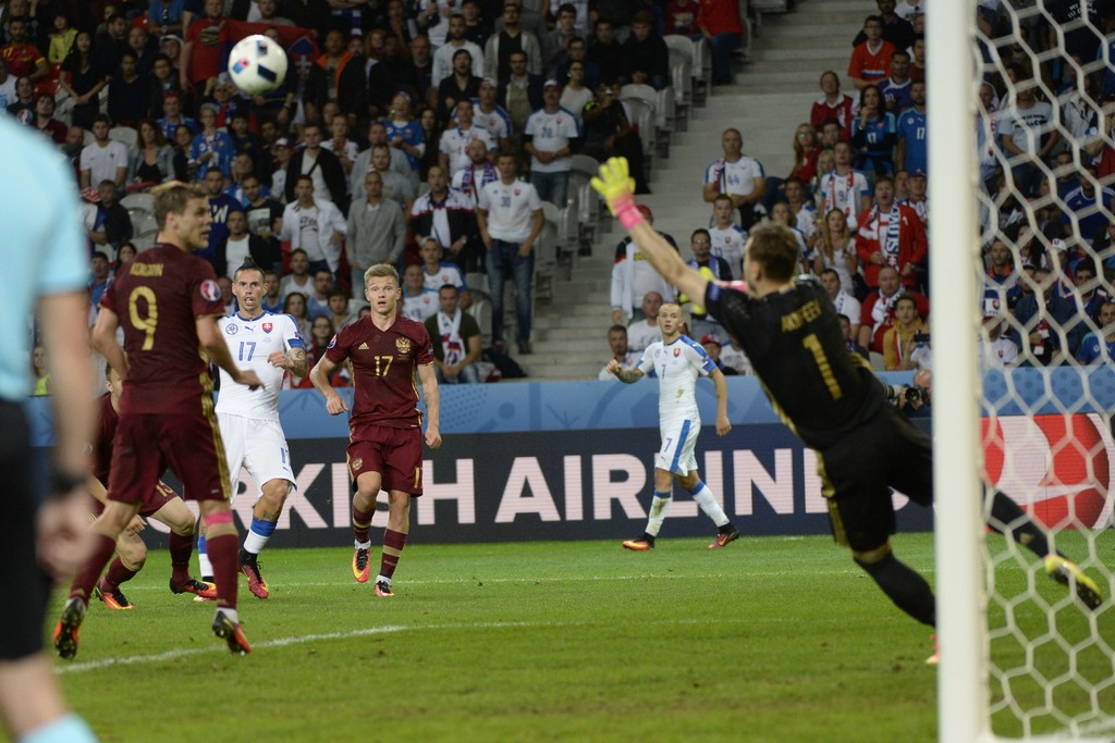 Obranná línia slovenského mužstva debutujúceho na šampionáte sa však nepoddala a po kontaktnom góle Denisa Glušakova v 80. minúte už "zbornej" ďalší nedovolila, hoci z niektorých situácií vyviazla podľa Petra Pekaríka bez ujmy aj s dávkou šťastia.