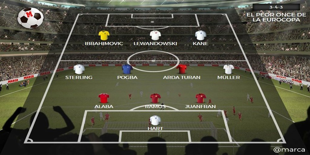 Španielsky špecializovaný denník Marca zverejnil "ideálnu" základnú zostavu nedávno skončených 15. majstrovstiev Európy vo futbale. Medzi tromi žrďami figuruje anglický Joe Hart, obranný trojblok tvorí zľava Rakúšan David Alaba, ktorého dopĺňajú dvaja Španieli - v strede Sergio Ramos a napravo Juanfran.