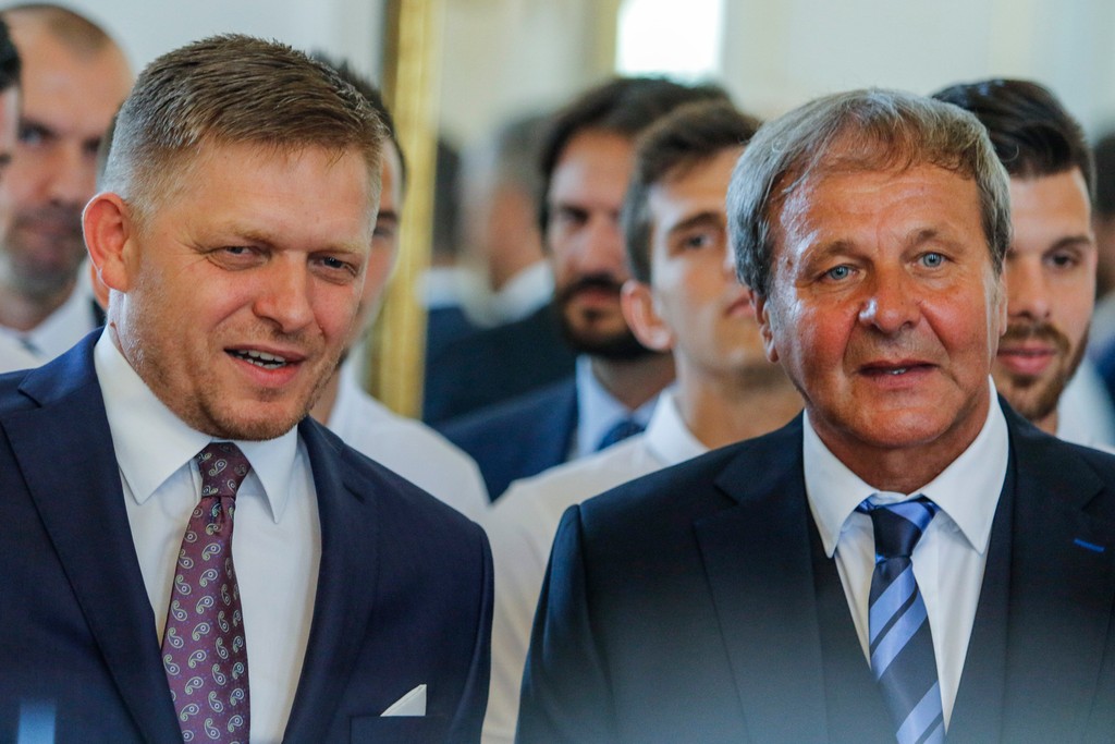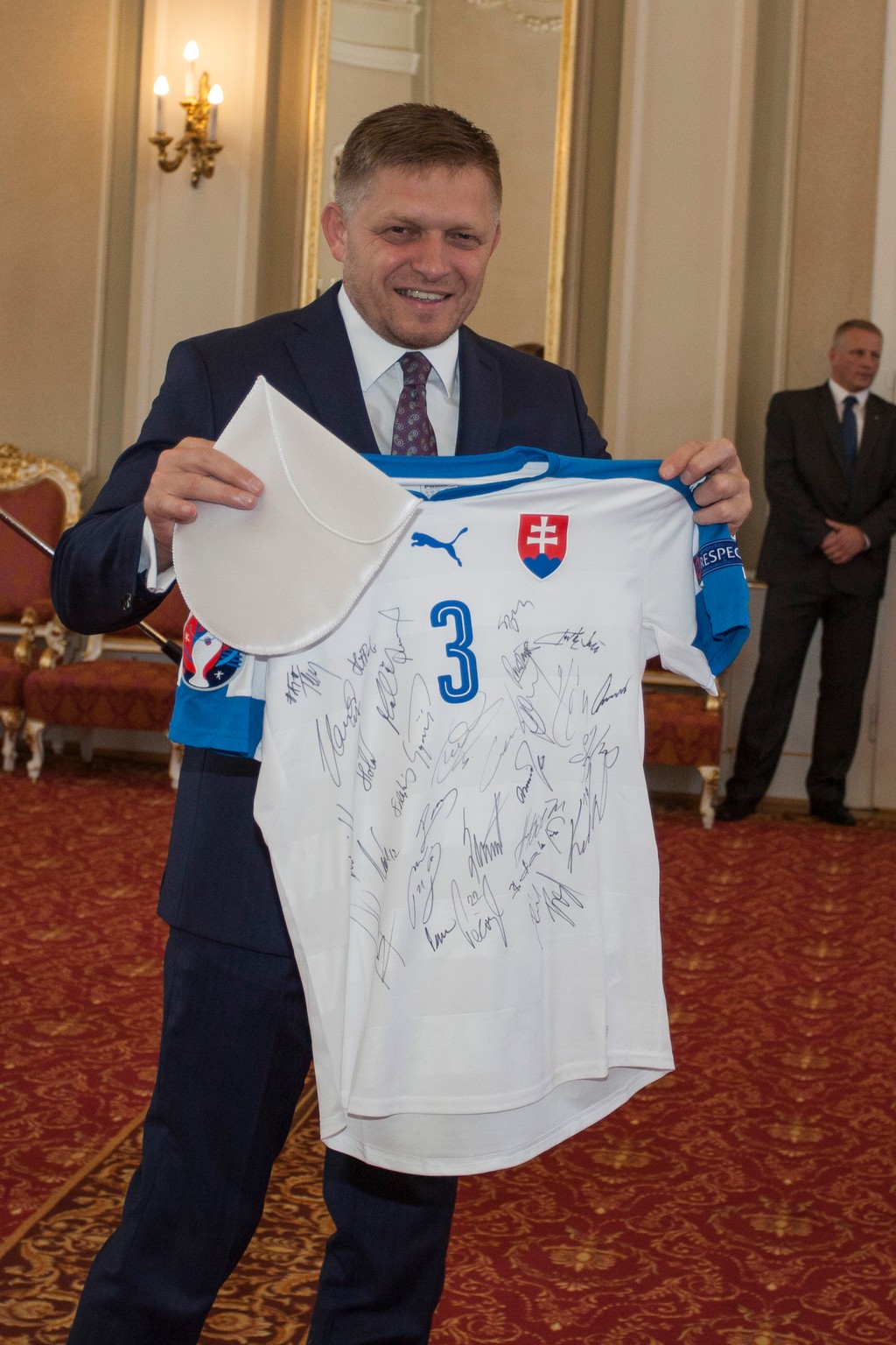 Fico dostal na pamiatku od slovenskej reprezentácie podpísaný dres a vlajku.