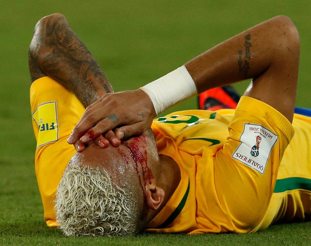 V 65. Minúte po údere lakťom od bolívijského hráča musel Neymar striedať s krvácajúcou ranou na čele.