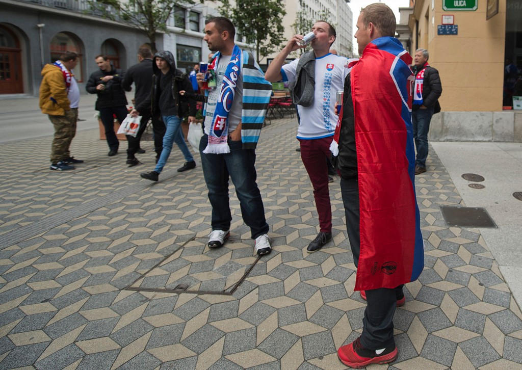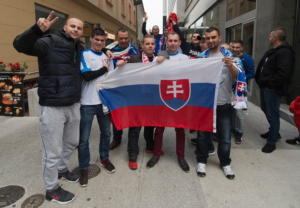 Priaznicov SR bolo od rána v uliciach Ľubľany cítiť na každom kroku. Oblečení v dresoch a mávajúci šálmi dokreslili kolorit sobotňajšieho dňa, ktorý v centre slovinskej metropoly ovládol tradičný trh. "Určite vyhráme. Chalani budú chcieť nahradiť stratené body zo zápasu s Anglickom. Myslím, že to bude 2:1 pre nás," vravel Peter zo Zvolena, ktorého sprevádzala priateľka Janka. "Neprehráme, môže byť aj remíza. Víťazstvo by potešilo, ale bude to náročné," doplnila svojho partnera sympatická bruneta.