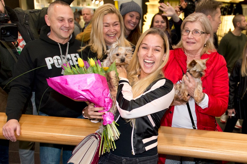 Na viedenské letisko ju v utorok ráno prišli privítať slovenskí fanúšikovia, rodina i priatelia. A tak isto jej milovaní štvornohí miláčikovia. Pred príletovou halou ju čakalo aj jedno prekvapenie - obrovská limuzína s jej menom. Cibulková zamierila zo Schwechatu do Bratislavy, kde mala prichystaný ďalší mediálny program.