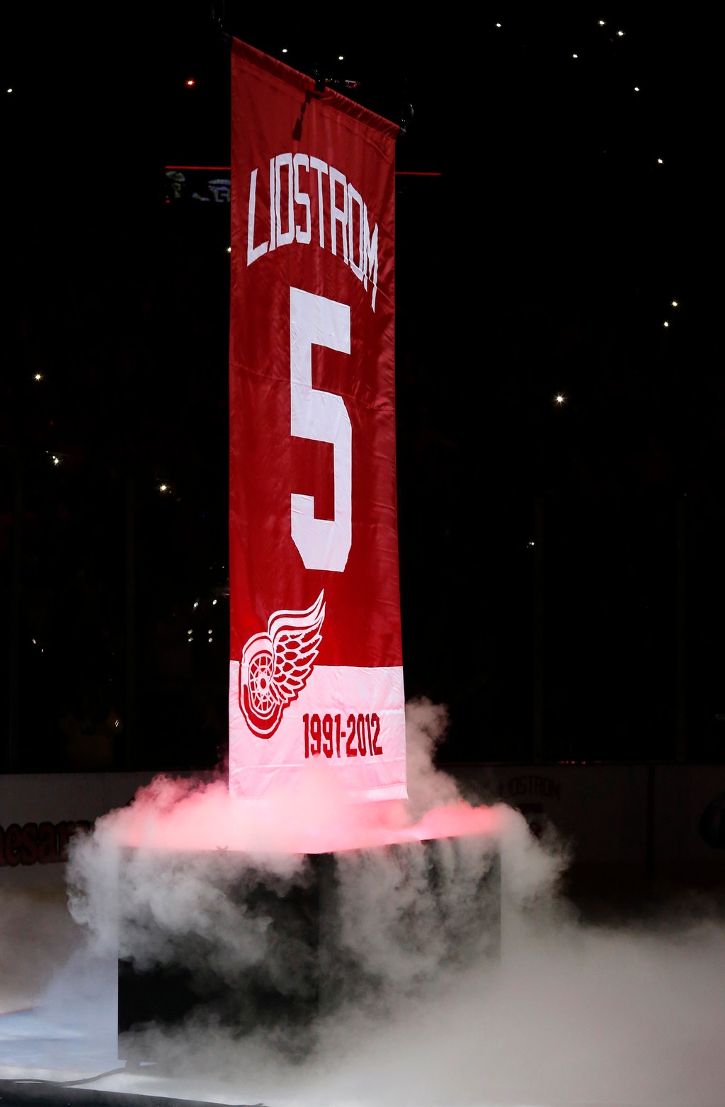 Dres s priezviskom 43-ročného Lidströma vytiahli ku stropu, kde sa ocitol v spoločnosti legendárnych mien ako Gordie Howe (č. 9), Steve Yzerman (č. 19), Ted Lindsay (č. 7), Terry Sawchuk (č. 1), Alex Delvecchio (č. 10) a Sid Abel (č. 12).