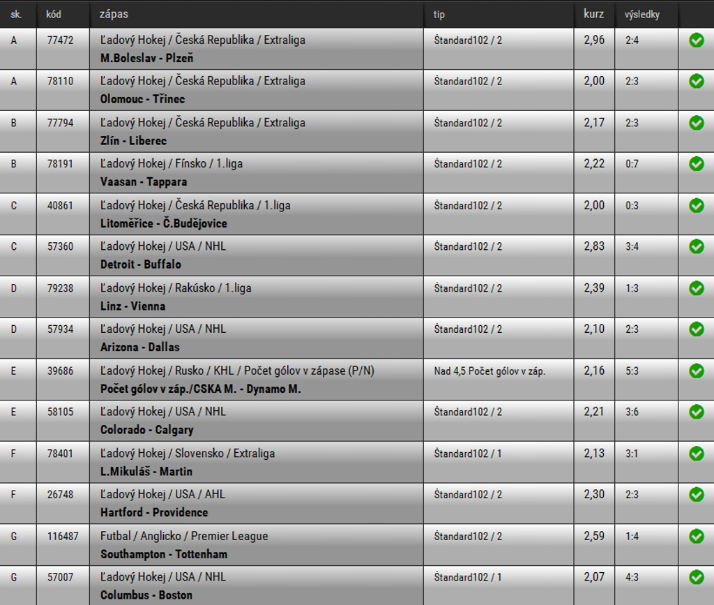 Stávkujúci sa zameral takmer výhradne na hokejové stretnutia v rámci európskych i zámorských líg.