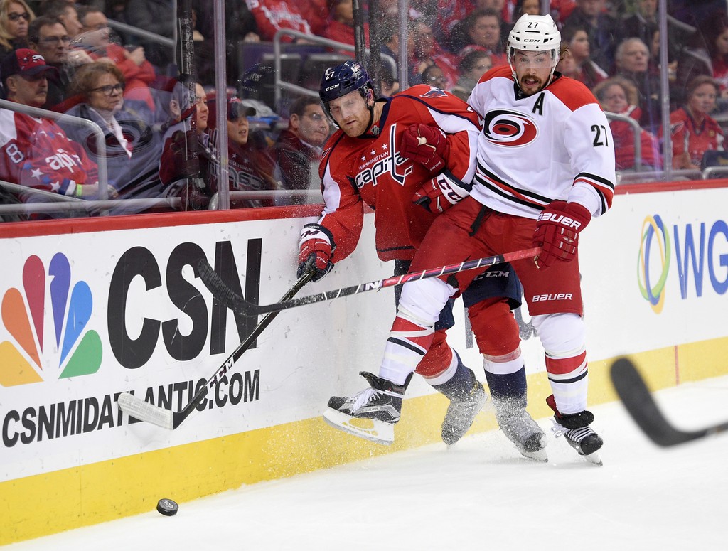 Góly: 12. Orlov (Kuznecov, Burakovsky), 18. Williams (Alzner, Niskanen), 29. Orlov (Connolly, Burakovsky), 39. Kuznecov (Alzner, Williams), 54. Oshie (Ovečkin, Bäckström), 58. Eller (Schmidt, Burakovsky) - 5. Staal (Lindholm, Aho). Brankári: Holtby - Ward, strely na bránku: 25:26, 18.506 divákov.