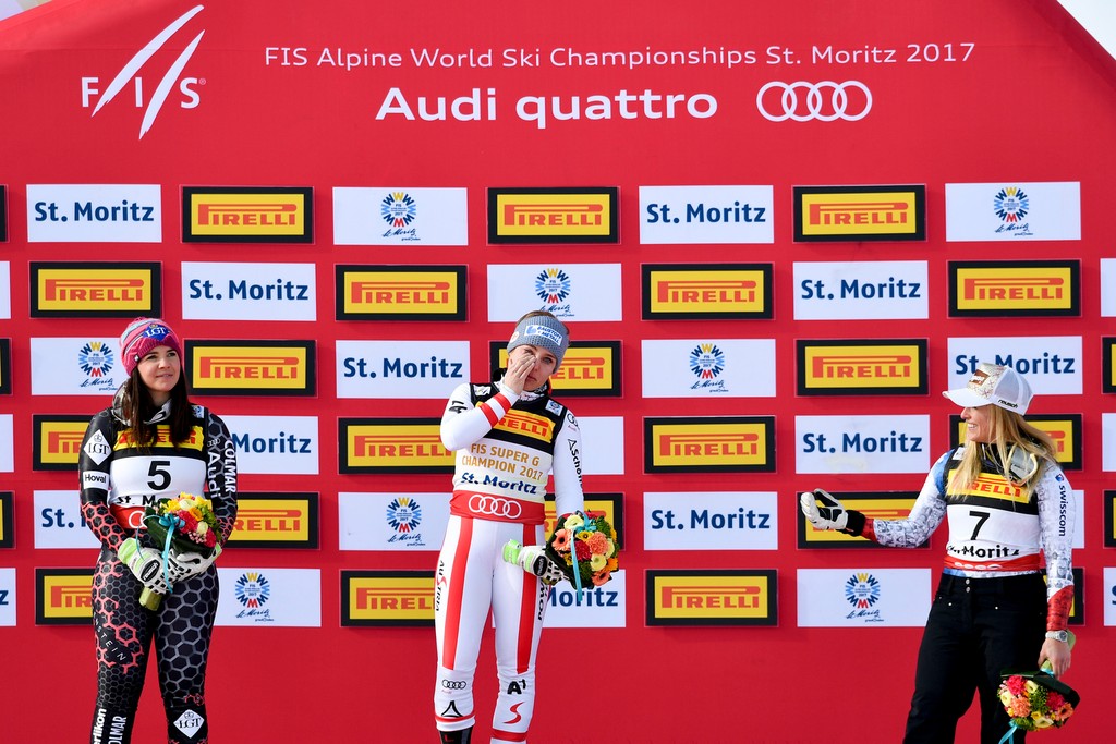 What a great race: #Schmidhofer wins, 2nd @TinaWeirather , 3th @Laragut - congrats Ladies! #stmoritz2017 #fisalpine pic.twitter.com/DsOTmlJImj