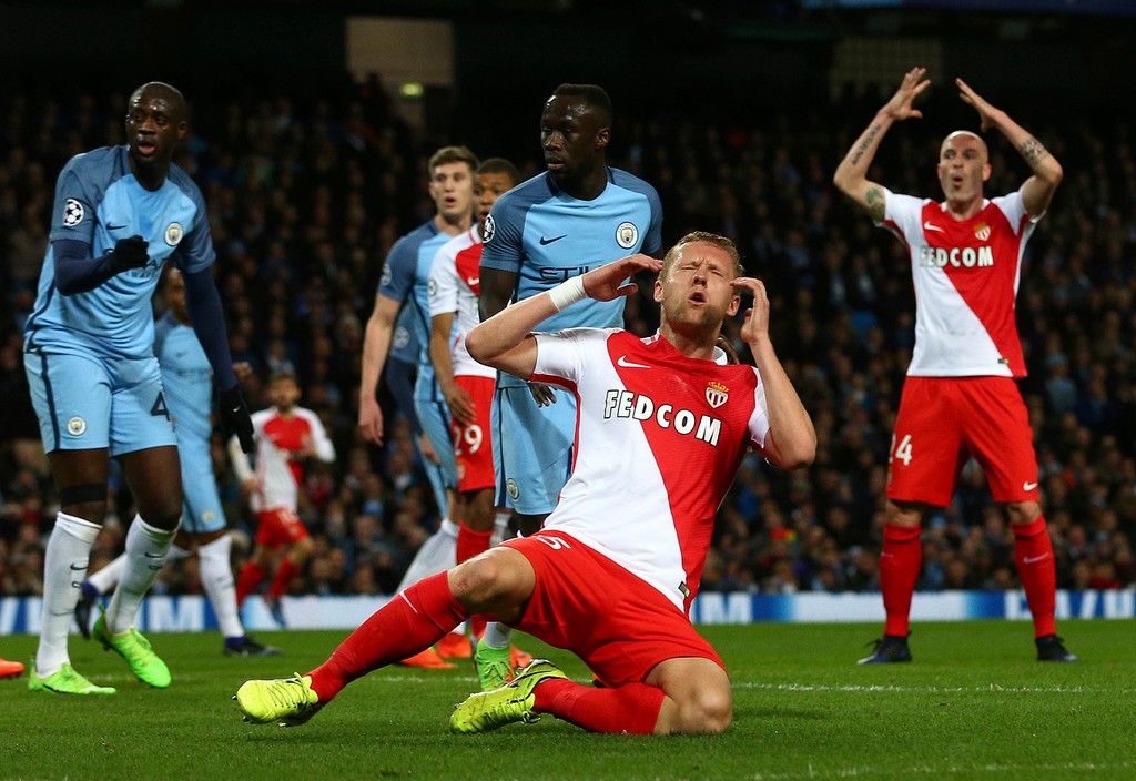 V 23. minúte spálil tutovku Agüero, ktorý nezužitkoval center De Bruyneho. Varovanie argentínskeho kanoniera nevzali "kniežatá" vážne a v 26. minúte prehrávali, keď Raheem Sterling doťukol loptu zblízka do siete po ukážkovej prihrávke Leroya Saného - 1:0. Monaco sa však rýchlo spamätalo, v 32. minúte center Fabinha usmernil do siete hlavou Radamel Falcao - 1:1.