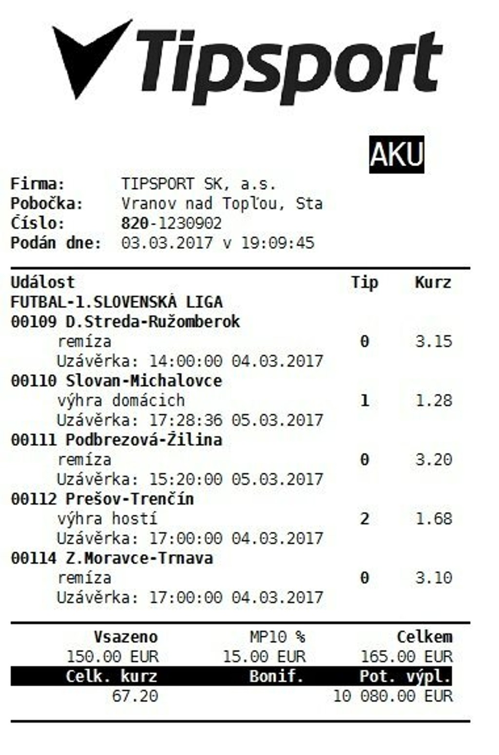 Parádny kúsok sa podaril neznámemu tipérovi, ktorý si podal tiket v piatkových večerných hodinách na pobočke stávkovej kancelárie vo Vranove nad Topľou.