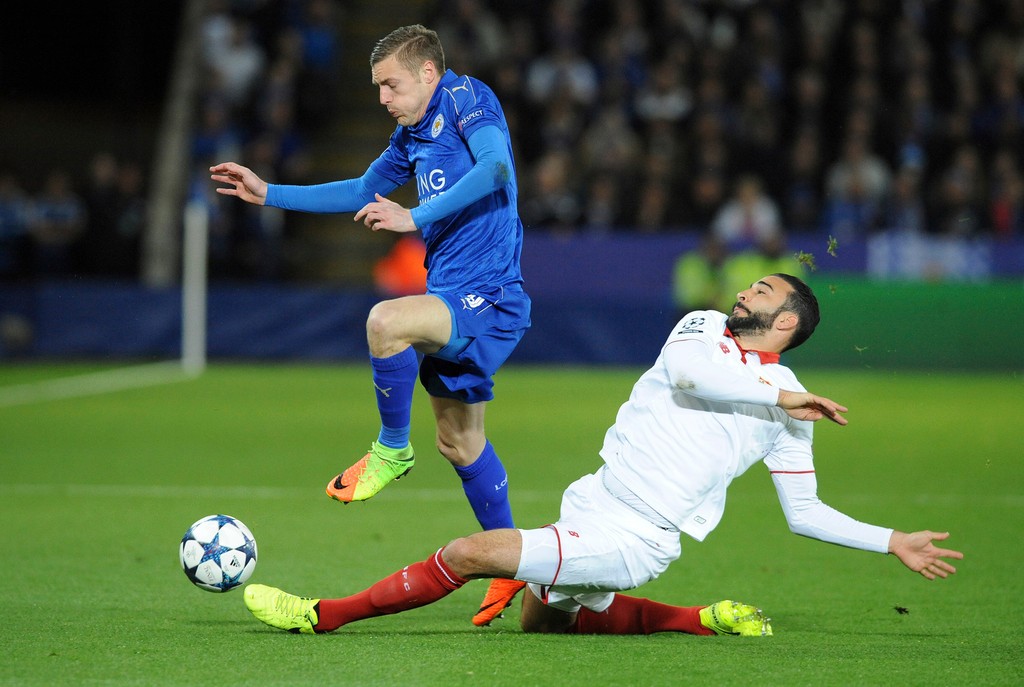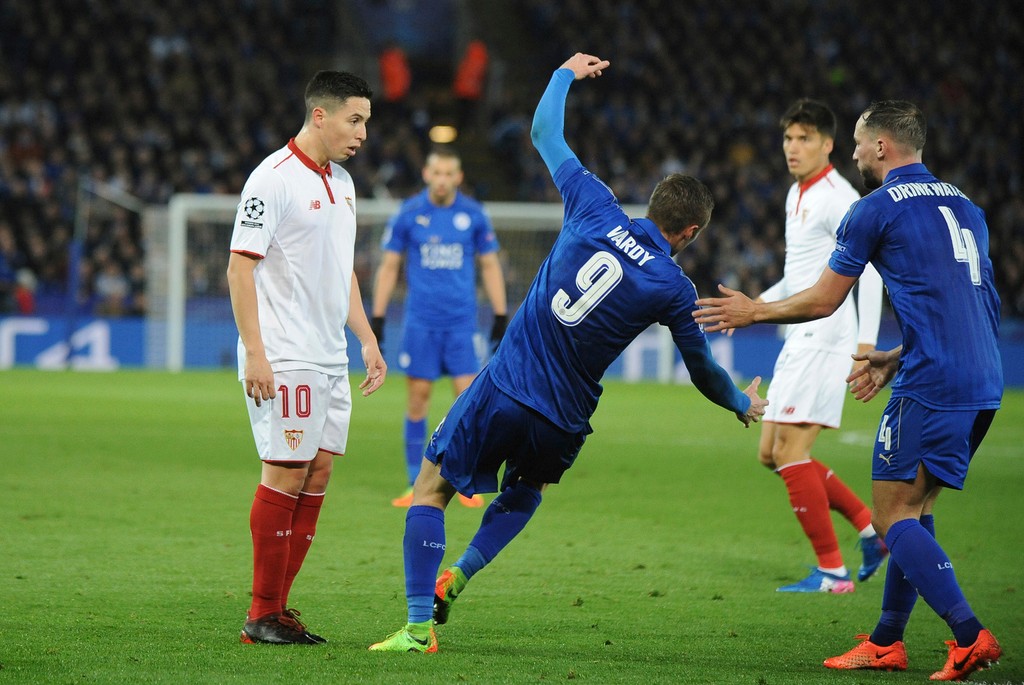 Leicester nastúpil na domácu odvetu proti Seville s novým trénerom Craigom Shakespeareom s cieľom čo najskôr zmazať jednogólové manko. Od 4. minúty však mohol prehrávať po strele Nasriho, ktorú Schmeichel vyrazil na roh.
