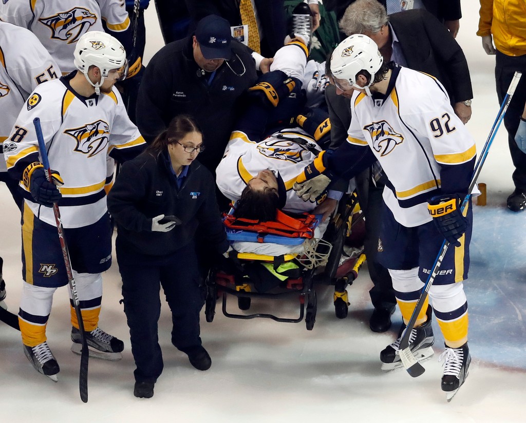 po 17-minútovom prerušení. Predators neskôr informovali, že Fiala bol