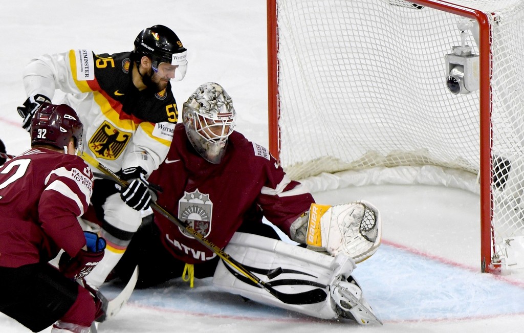 Hra sa opäť vyrovnala a do vedenia išlo Lotyšsko, avšak v závere využili Nemci kontroverzné vylúčenie súpera. Počas presilovky a power play skórovali 33 sekúnd pred sirénou. V svižnom predĺžení mali viac síl i odvahy na preriedenej ploche Lotyši, ale Grubauer dvakrát excelentne zachránil. V nájazdoch zo šiestich trafil iba Tiffels.