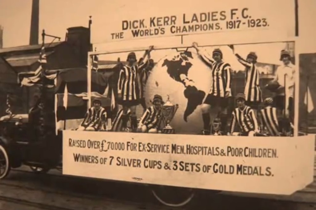 Prvé profesionálne futbalové tímy zložené čisto zo žien tak niesli názvy fabrík. V roku 1920 ženský futbal prekvital. V Anglicku existovalo až 150 ženských tímov. Jedným z prvých slávnych klubov bol Dick Kerr's Ladies, ktorý dostal meno podľa továrne na muníciu, ktorá sídlila v anglickom meste Preston. Išlo o prvý profesionálny ženský tím, ktorý hral v šortkách a absolvoval zámorské turné.