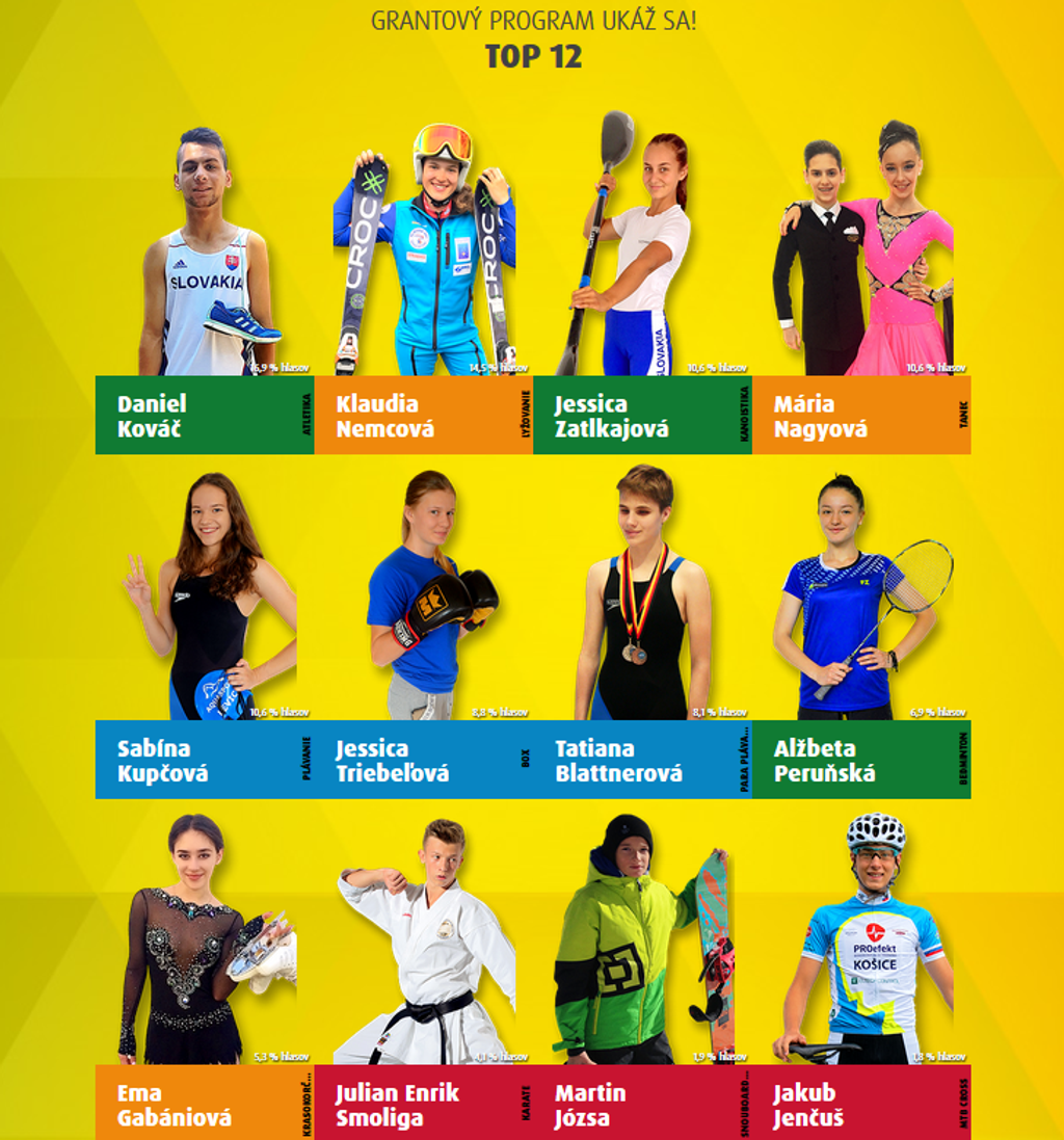 Až 116 mladých talentovaných športovcov sa zapojilo do druhého ročníka grantového programu UKÁŽ SA!. Nadácia Slovenského olympijského výboru (SOV) prerozdelí až 30-tisíc eur tým, ktorí v internetovom hlasovaní získajú najviac hlasov verejnosti. Spomedzi prihlásených projektov majú zastúpenie športy ako atletika, lyžovanie, plávanie, ale aj spoločenské tance či bedminton.