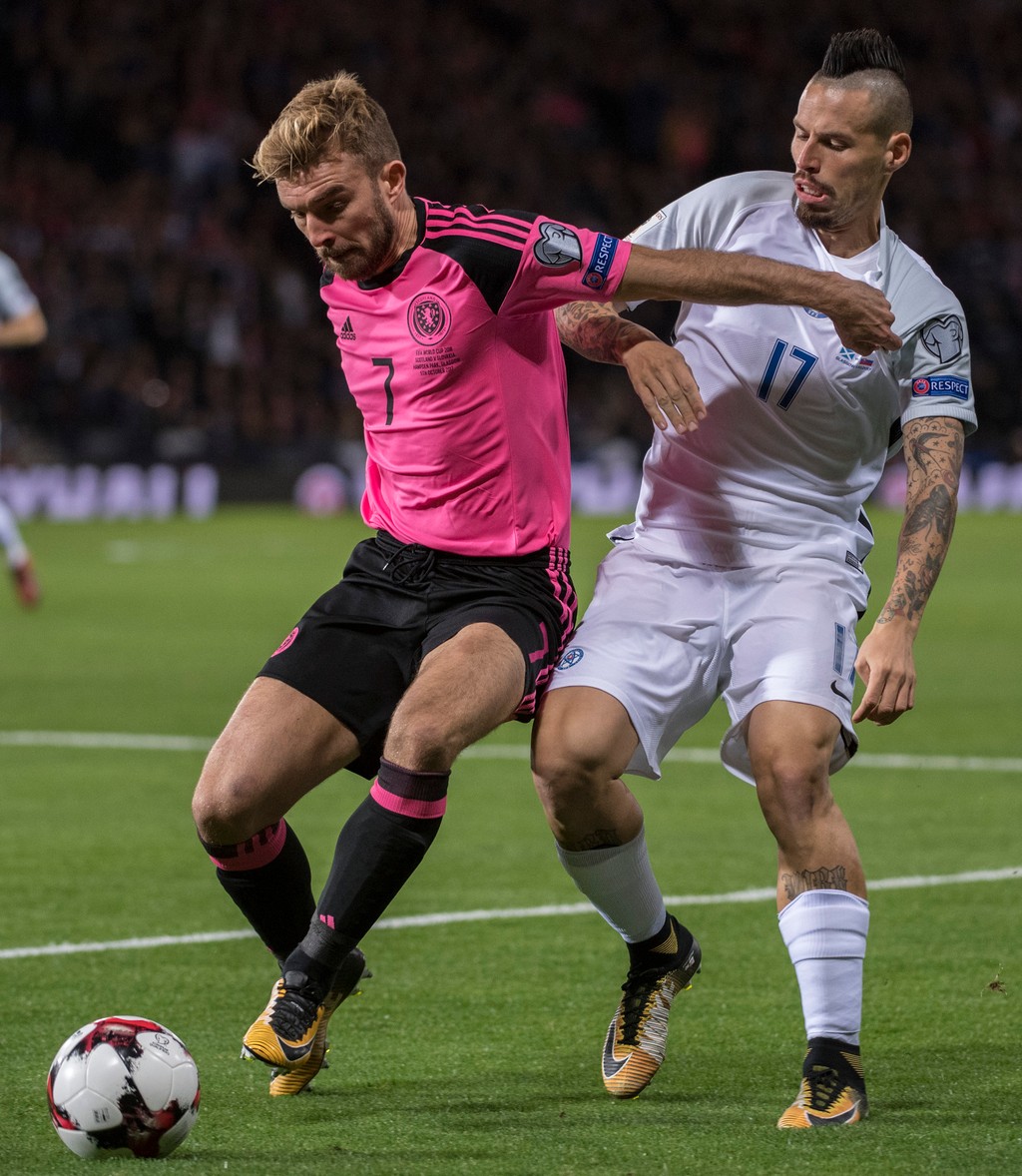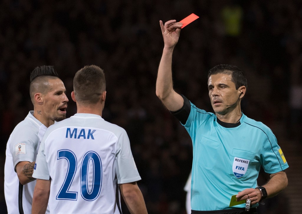 Slovenská futbalová reprezentácia podľahla vo štvrtkovom stretnutí 9. kola F-skupiny kvalifikácie MS 2018 domácemu Škótsku 0:1. Zverenci Jána Kozáka dohrávali v glasgowskom Hampden Parku už od 23. minúty bez vylúčeného Róberta Maka, ktorý videl červenú kartu po druhej žltej. Jediný gól inkasovali v predposlednej minúte riadneho hracieho času, keď strelu striedajúceho Chrisa Martina tečoval do vlastnej siete Martin Škrtel. Pôvodne za autora gólu UEFA označila škótskeho futbalistu, ale krátko po zápase po spresnení gól označila za vlastný.