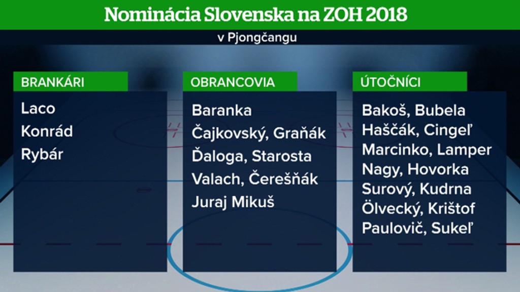 Generálny manažér Miroslav Šatan a reprezantačný tréner Craig Ramsay zverejnili 25 člennú nomináciu hráčov na zimné olympijské hry v Pjongčangu. Z nej len dvaja mimo najvyššej domácej či českej súťaže.