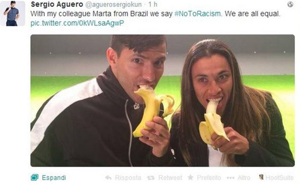 Niekto z divákov po ňom hodil banán. Alves ho zdvihol a zjedol.