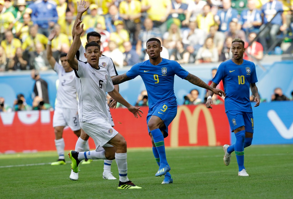 Čo do ofenzívneho vyjadrenia to bol zo strany Kostariky na dlhé minúty posledný pokus, režisérsku taktovku držali pevne v ruke "kanárici". Tí v 26. minúte rozvlnili sieť po strele Gabriela Jesusa, ktorý však stál mimo hry a rozhodca tento gól neuznal.