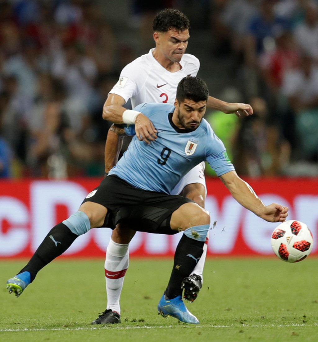 V hre Portugalska chýbal moment prekvapenia. Úradujúci majstri Európy to skúšali cez krídelné priestory, uruguajská obrana na čele s Godinom a Gimenezeom však pracovala spoľahlivo. V 22. minúte po faule na Suareza mohol kanonier FC Barcelona zvýšiť náskok Juhoameričanov, no jeho priamy kop Patricio vyrazil. Po polhodine hry sa k štandardnej situácii dostal aj Ronaldo, no lopta neprešla cez uruguajský múr.